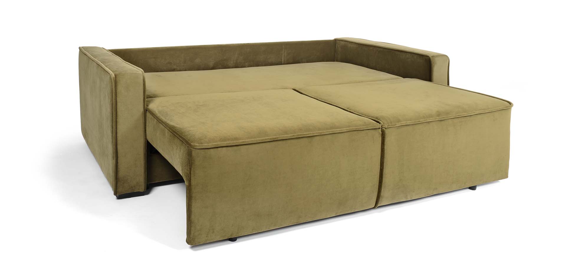 Das Ausziehsystem ist sehr einfach: Die Sitzfläche wird nach vorne gezogen und die Rückenlehne heruntergeklappt.