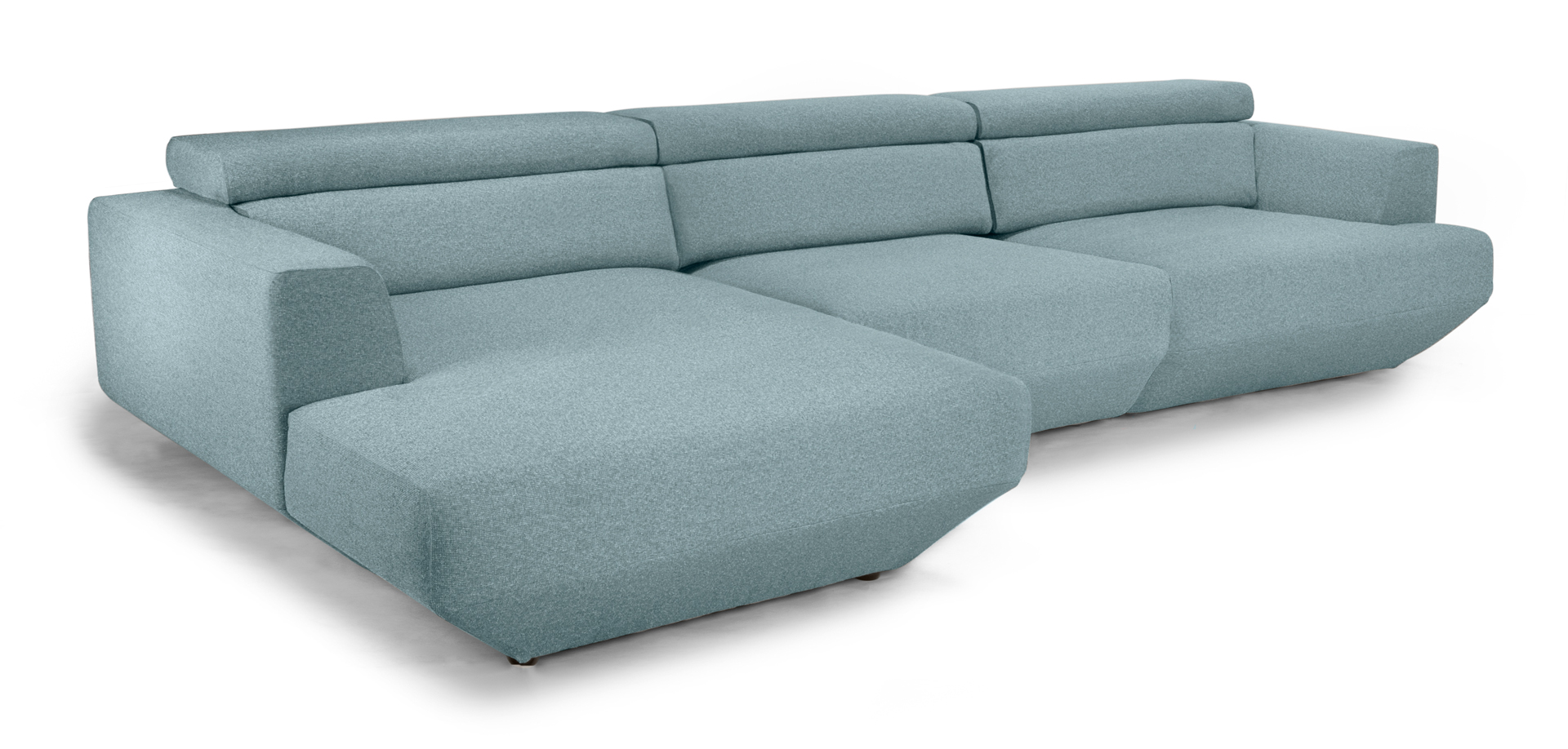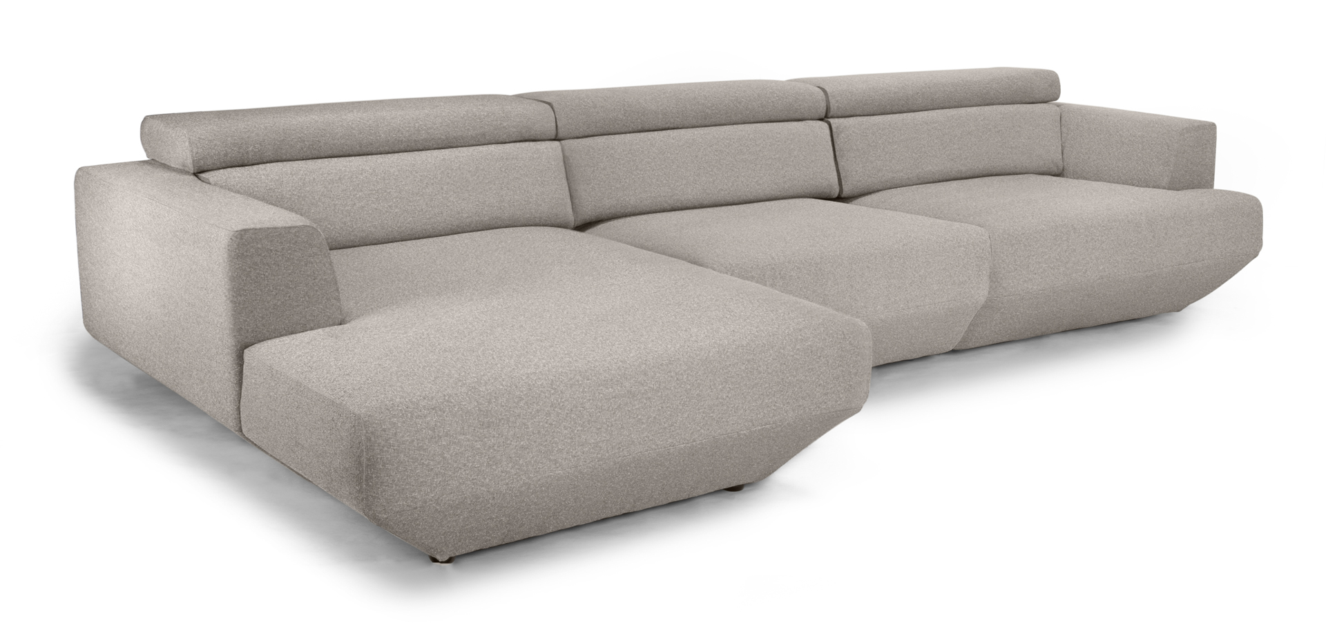 Das Ecksofa Rubine besticht durch ein Design, das Komfort bietet – mit der Kombination aus Chaiselongue und typischen Sitzelementen, die sich nach Wunsch in Relaxfunktionen verwandeln lassen. Der Entspannungsfaktor wird zusätzlich durch die mehrfach verstellbaren Kopfstützen im oberen Bereich des Sofas erhöht.