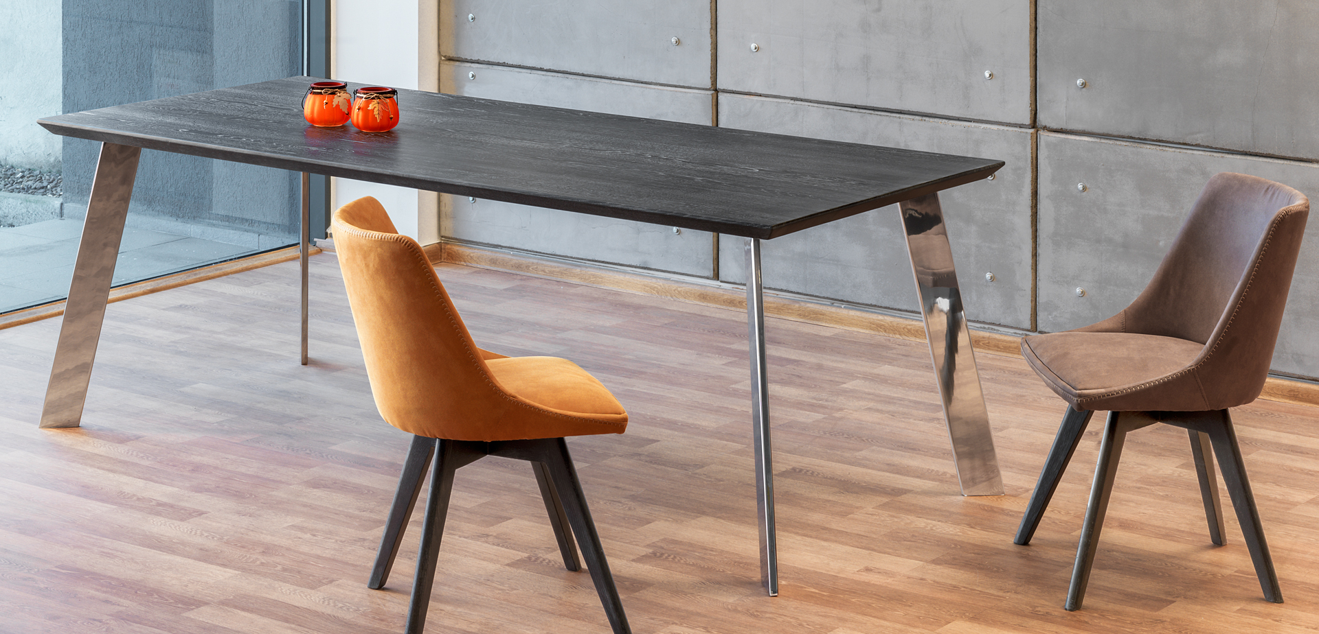 Das Gesamtbild des Antares-Tisches vereint rustikalen Charme mit industriellem Charakter.